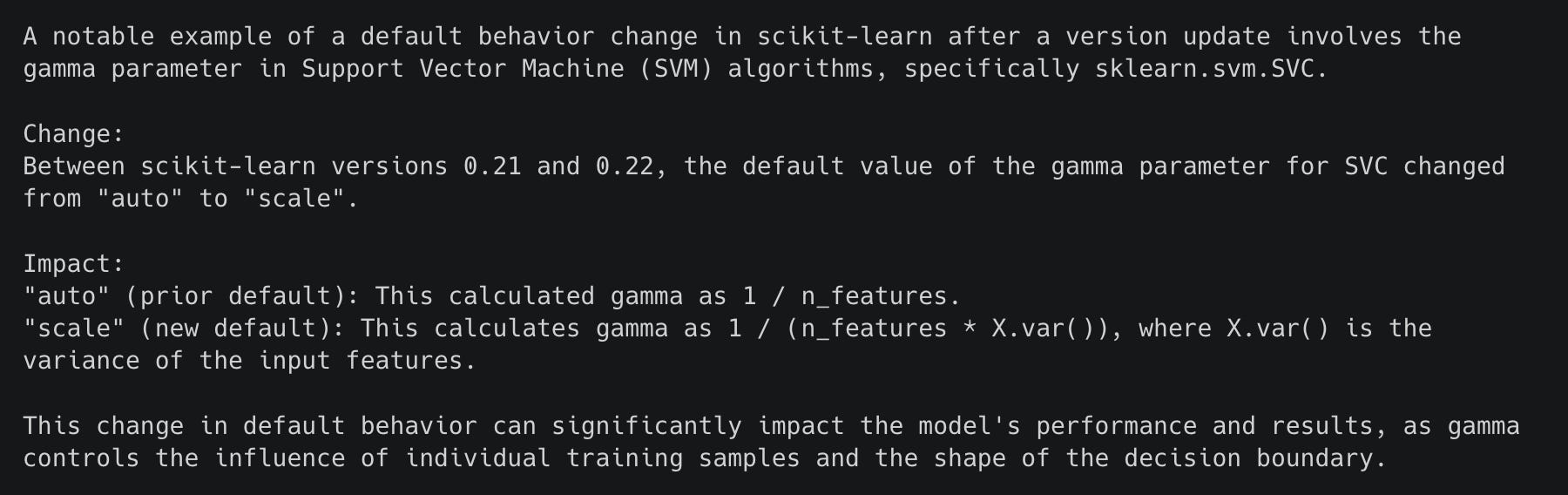 Or even worse, your model’s predictions suddenly shift, accuracy drops, and nobody can figure out why. The culprit? A minor version update in one of your dependencies that changed default behaviour.
